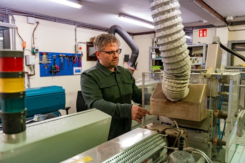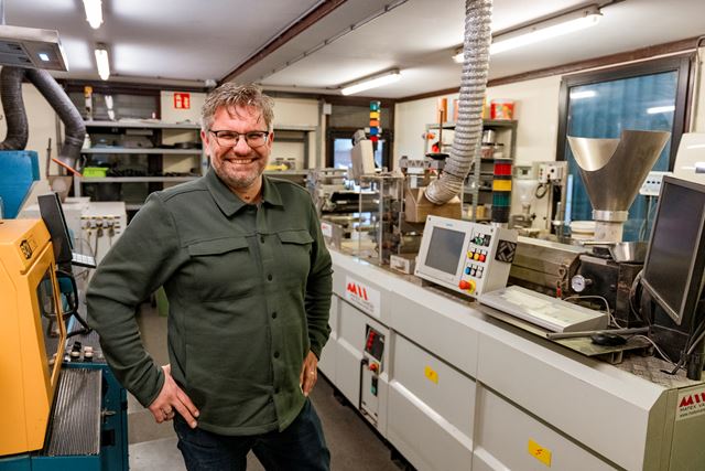 We ontmoeten Jan in Biddinghuizen, een van de vestigingen van plastic recycling. Die dag werkt hij onder het schuine dak op het ‘zoldertje’. Het is maar goed dat Jan niet lang is, want anders kon hij er niet eens staan. Het maakt hem allemaal niets uit. “Ik heb helemaal geen werkplek”, lacht hij. “Ik kom op alle vestigingen en zoek gewoon een plekje dat nog vrij is. En dat past weer bij mijn functie. Als manager Research & Development kijk ik bij alle vestigingen wat er gebeurt in het productieproces. Ik ben niemands leidinggevende en hoor niet bij een bepaalde vestiging.”